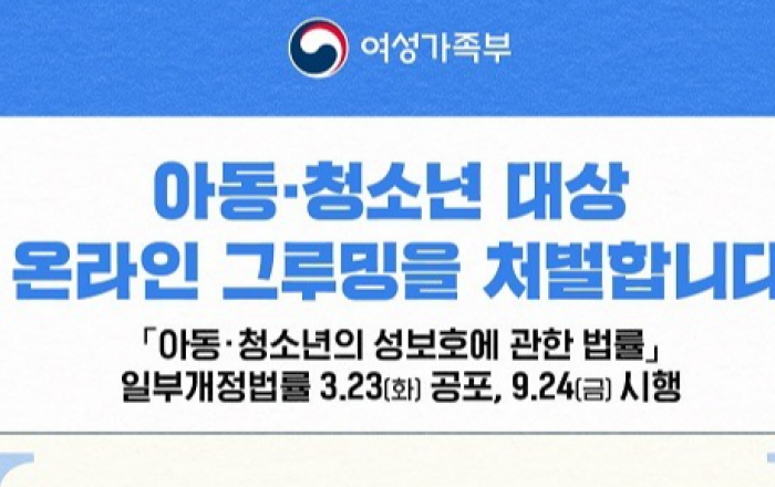 앞으로 경찰이 위장수사로 아동·청소년 디지털 성범죄를 막고 처벌할 수 있게 된다. 또 온라인 그루밍이 신종 성범죄로 범죄 구성요건이 규정돼 처벌이 가능하게 됐고 범죄 피해를 사전에 막기 위한 경찰의 신분비공개·위장수사 특례도 처음으로 제도화됐다.여성가족부는 2