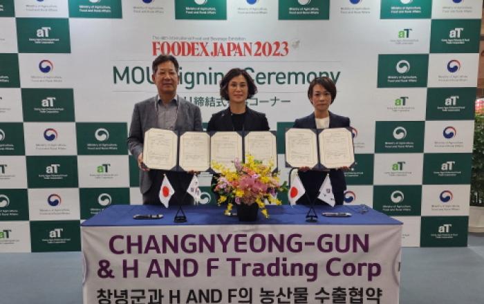 경남 창녕군은 지난 8일, 일본 도쿄에서 개최되는 '동경 식품 박람회(FOODEX 2023)'에 참가해 신선 농산물 200만 달러(한화 약 26억 원)를 수출하는 업무협약(MOU)을 체결했다. 박람회에서 군은 경남무역과 함께 알에스 농업회사법인(길곡면 소재)에서 생