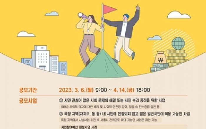 서울시, 500억 규모 2024년도 시민참여예산 사업 공모 서울시는 2024년도 시민참여예산 편성을 위한 시민 제안사업 접수를 3월 6일부터 4월 14일까지 진행한다고 밝혔다. 서울시 시민참여예산은 지방재정법을 근거로 시민들이 예산의 편성 및 집행,