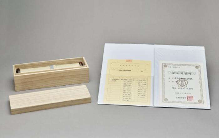 최유련 개국원종공신녹권 보관함과 보물지정서 서울역사박물관은 강릉최씨 대경공(흔봉)파 재경종친회(회장 최은철)로부터 1998년 보물로 지정된 ‘최유련 개국원종공신녹권(崔有漣 開國原從功臣錄券)’을 기증받았다. 이번 기증은 서울역사박물관 소장품의 가치를 높이고