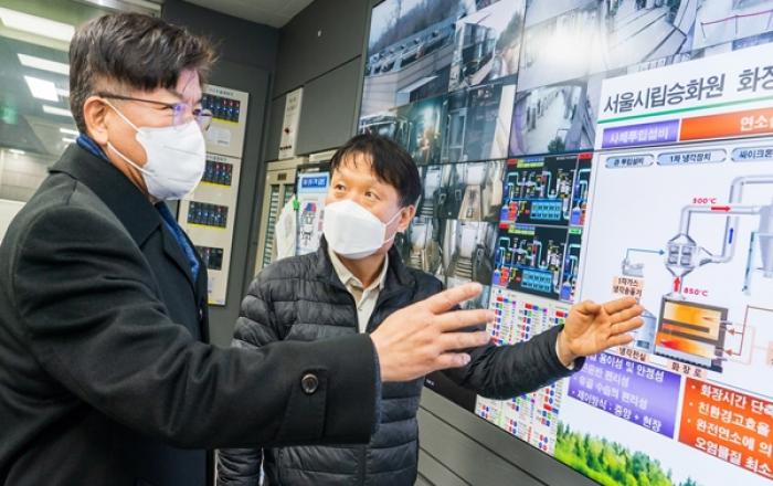 한국영(사진 왼쪽) 서울시설공단 이사장이 경기도 고양시 서울시립승화원에서 화장시설과 안치시설 가동상황을 점검하고 있다. 서울시설공단은 3년 만에 돌아온 윤달(3월22일~4월19일)을 맞아 서울시립장사시설 (서울시립승화원, 서울추모공원)의 개장유골 화장을