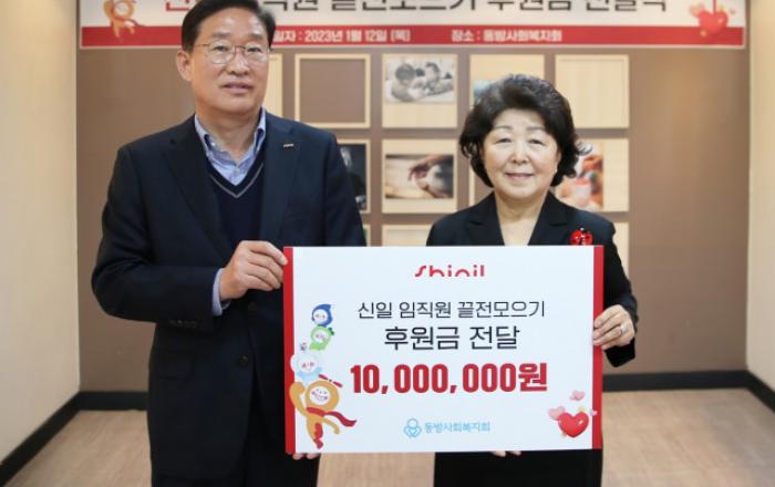 대한민국 종합가전 기업 신일전자(이하, 신일)가 취약 계층 아동의 건강한 성장 및 발달을 돕기 위해 ‘신일 끝전 모으기’ 캠페인으로 조성한 후원금 1000만원을 동방사회복지회에 전달했다고 17일 밝혔다.2019년부터 임직원들의 자발적 참여로 4년째 진행하고 있는 ‘신일