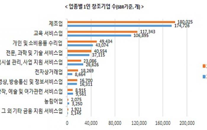 2019년 기준 국내 1인 창조기업은 총 45만 8322곳으로 전년보다 7.2% 늘어난 것으로 나타났다.또 온라인 기반 업종 증가 등에 힘입어 창의성·전문성을 갖춘 1인 창조기업 수는 2017년부터 3년 연속 증가세를 기록한 것으로 조사됐다.중소벤처기업부는 이 같은 내