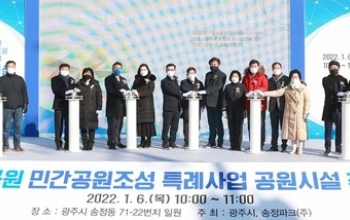 경기 광주시는 6일 송정동 71-22 일원에서 신동헌 시장, 국회의원, 도·시의원, 주민 등이 참석한 가운데 첫 민간공원조성 특례사업으로 추진 중인 송정공원 착공식을 개최했다.송정공원은 민간공원 추진자가 공원 전체를 매입해 70% 이상을 공원으로 조성한 후 지방자치단체