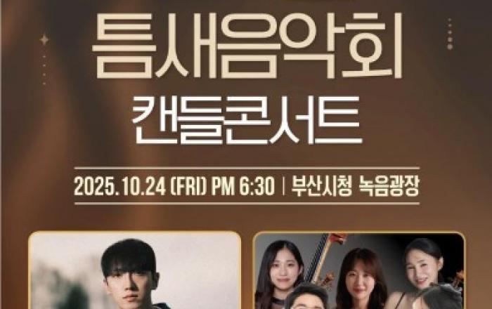 연제구(구청장 주석수)는 오는 10월 24일 오후 6시 30분, 소소길 인근 부산시청 녹음광장에서 제2차 어울림 틈새음악회 ‘캔들콘서트’를 개최한다고 밝혔다.이번 공연은 연제구 개청 30주년을 기념해 마련된 행사로, 콘트라베이스를 비롯한 현악 5중주 라이트아웃 앙상블의