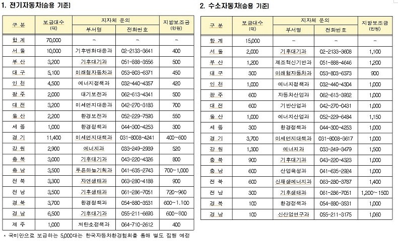 지방자치단체는 1∼2월부터 올해 보급사업을 공고할 예정이며 구매보조금 신청과 관련된 각종 문의사항은 전기·수소차 통합 전화상담실(콜센터, 1661-0970)을 통해 안내받을 수 있다.