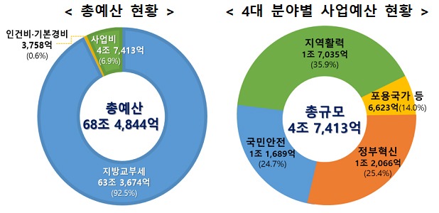 내년도 사업비는 지역활력 제고, 예방적 재난안전관리, 디지털·정부혁신, 사회통합 및 포용국가 등 4대 분야에 중점을 두고 4조 7413억원을 편성했다.