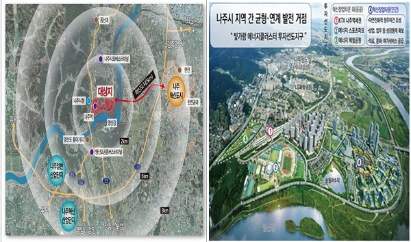 교통요충지역인 나주KTX 역세권을 중심으로 에너지클러스터를 조성, 나주혁신도시와 연계해 부족한 정주여건을 개선하고 신도시와 원도심 지역과의 상생발전을 통한 지역경제 활성화와 일자리 창출에 기여하게 된다.