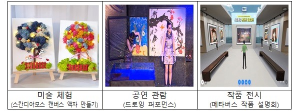 평소 접하기 어려운 드로잉 퍼포먼스 등 예술공연을 관람하고, 확장 가상 세계(메타버스) 전시회에서 자신이 만든 작품의 특징과 의미를 다른 참가자들과 공유하는 시간도 마련된다.