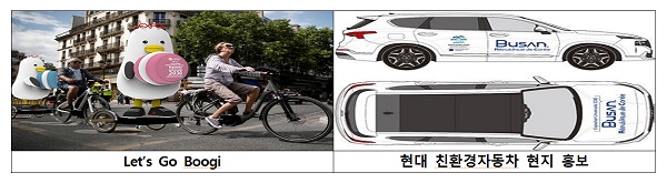 또 현대자동차와 협업해 친환경차 6대에 2030부산세계박람회 디자인을 랩핑해 파리 시내를 운행했다.