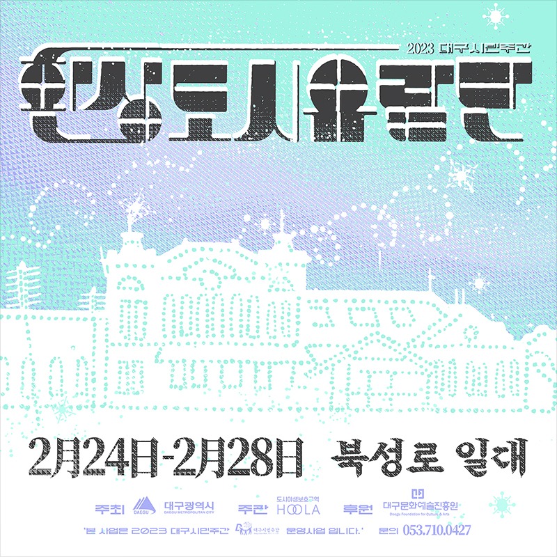 2월 24일(금)부터 28일(화)까지 열리는 이 행사는 2023 대구시민주간을 맞아 대구시와 청년 단체(훌라, 대표 안진나), 청년 예술가들이 협업해 근대 문화공간과 이야기를 매개로 재창작한 작품을 선보이는 시민 답사·체험 프로그램이다.