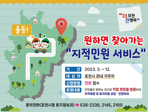 경기 포천시는 이달부터 '원하면 찾아가는 지적민원 서비스'를 추진한다.