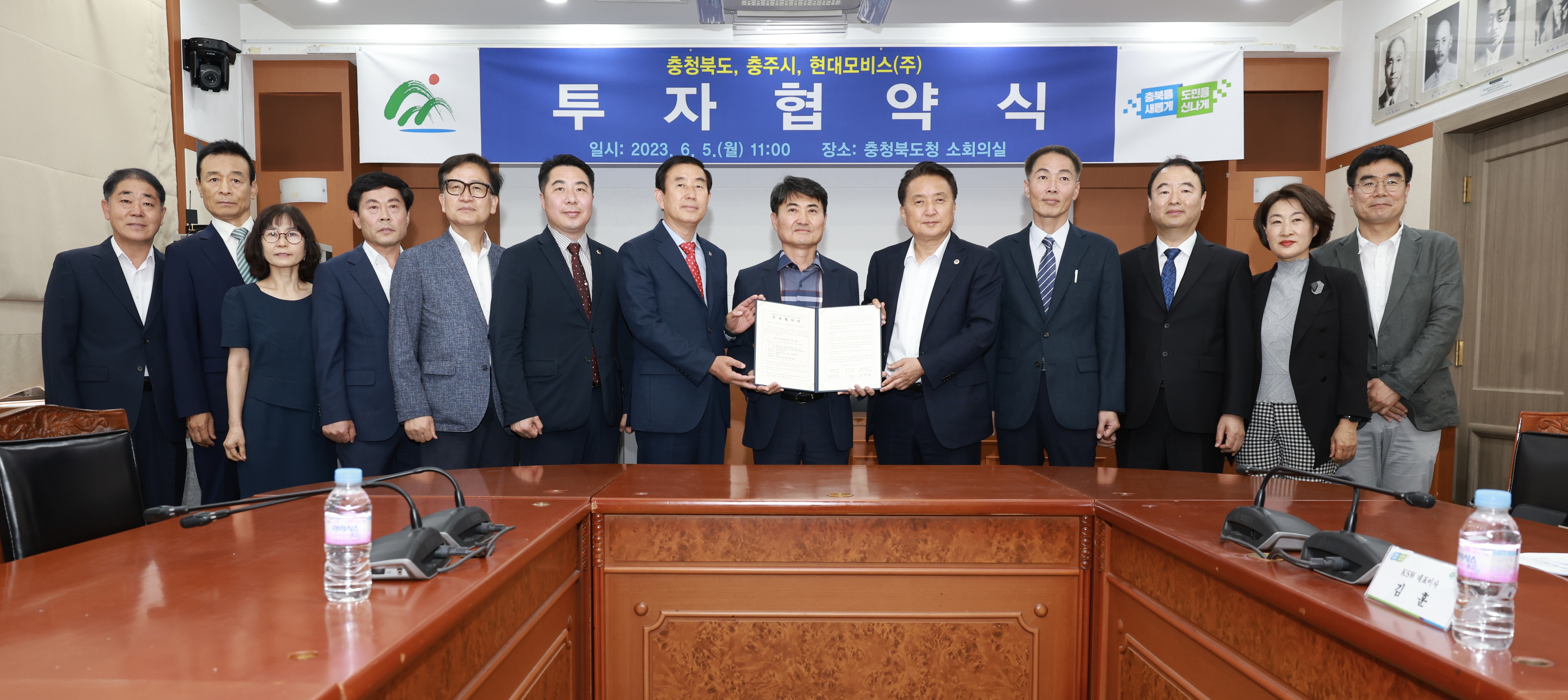 충청북도는 6월 5일 충북도청에서 충청북도와 충주시, 현대모비스㈜간 전기차용 배터리팩 제조 공장 신설 투자 협약을 체결했다고 밝혔다.