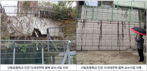 구의 지속적인 노력으로 '2023년 서울시 안전 취약시설 보수 ·보강 1차 사업지로 선정'돼 지난해 11월 해당 다세대주택 옹벽은 가설 구조물 해체 후 옹벽 보수 공사를 완료했다.