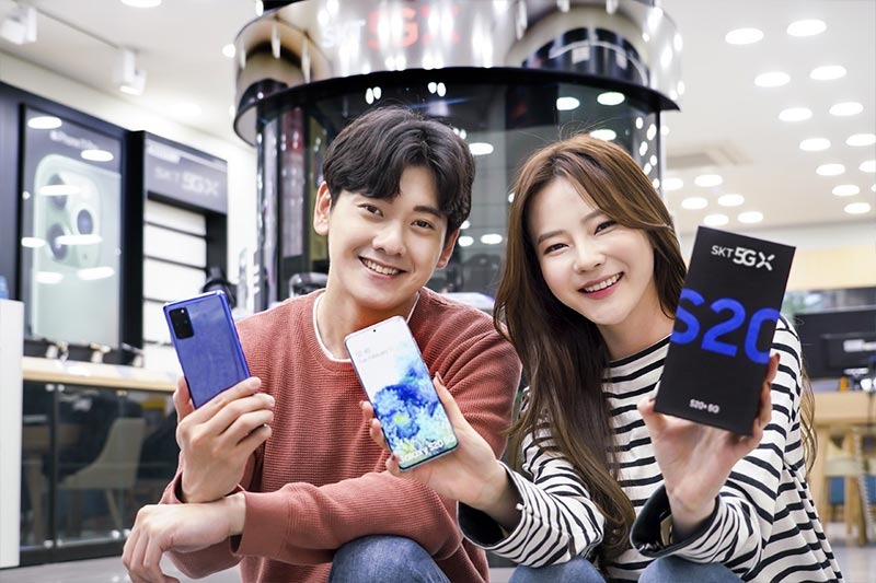 SK텔레콤(www.sktelecom.com)은 20일부터 갤럭시S20 예약 판매에 돌입하고 오는 27일부터 개통을 시작한다고 밝혔다. 갤럭시S20 플러스 아우라 블루 컬러는 전 세계에서 오직 SK텔레콤에서만 구매 가능하다. 블루 컬러는 기존에 갤럭시 단말을 구매한 고객들로부터 큰 인기를 끌었다.