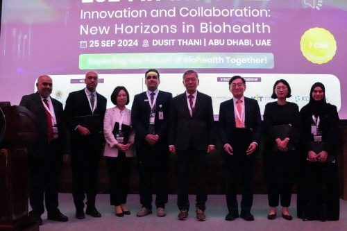 ‘혁신과 협업: 바이오헬스의 새로운 지평(Innovation and Collaboration: New Horizons in Biohealth)’이라는 주제 아래 개최된 본 행사는 UAE 아부다비 보건부, 아부다비 줄기세포센터(ADSCC, Abu Dhabi Stem Cell Center), 아랍에미리트 의약품청(EDE, Emirates Drug Establishment) 보건정책 관계자 및 현지 의약품 유통기업 등 300여명이 참석한 가운데 성황리에 마무리됐다.