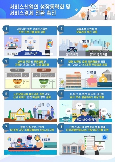 이에 정부는 서비스산업의 생산성을 높여 서비스산업을 우리 경제의 새로운 성장동력으로 키우고 서비스경제 전환을 촉진하기 위해 이번 방안을 마련했다.