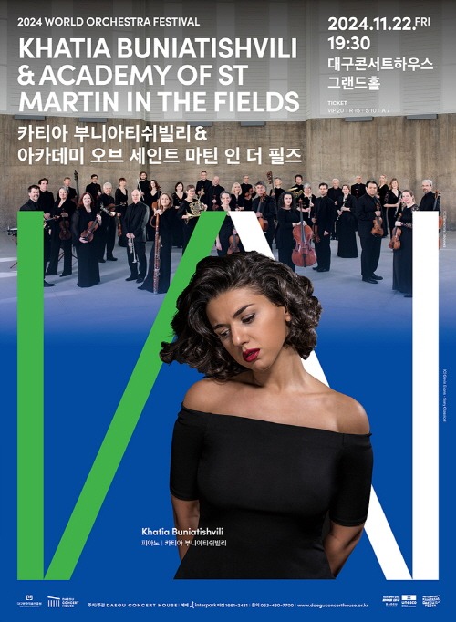 박창근 대구콘서트하우스 관장은 “감각적인 테크닉과 곡 해석 능력을 갖춘 ‘카티아 부니아티쉬빌리’와 유럽 최고의 챔버 오케스트라인 ‘아카데미 세인트 마틴 인 더 필즈’의 만남은 클래식 애호가들에게 11월의 가장 큰 선물이 될 것이다. 그녀의 피아노 연주와 오케스트라 간의 세밀한 대화를 느끼며 11월을 아름답게 마무리하시길 바란다”고 소감을 밝혔다.