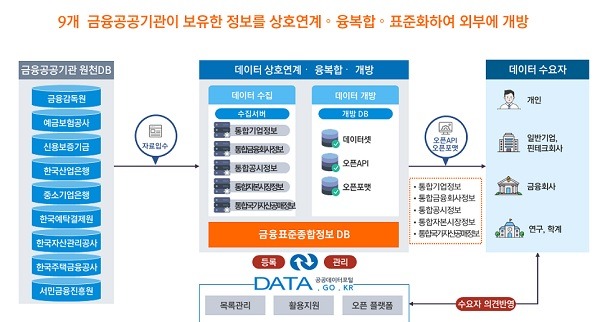 금융공공데이터는 금융위원회 및 금융감독원, 예금보험공사, 한국산업은행, IBK기업은행, 신용보증기금, 한국예탁결제원, 한국자산관리공사, 주택금융공사, 서민금융진흥원 등 9개 금융공공기관이 보유한 방대한 데이터를 연계·융복합·표준화한 빅데이터이다.