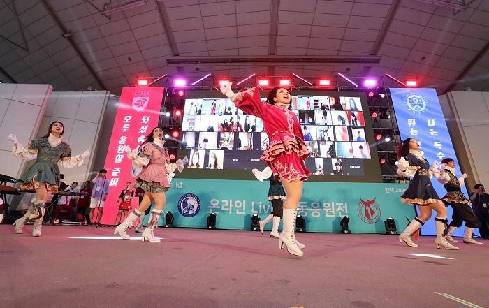 온라인 응원 축제는 ‘화합’, ‘경쟁’, ‘피날레’ 3부로 구성됐다. 1부는 비대면으로 참여한 학생들과 두 학교의 응원단이 양교의 응원가를 함께 부르며 시작했다. 특히 노천극장 무대 양쪽에 세워진 LED 현수막을 통해 각 학교의 참신한 응원 공방 문구들을 선보이며 응원제의 열기를 더했다. 2부는 두 학교의 전통적인 응원단 대결로 각 학교를 대표하는 MC들의 편애 중계를 진행해 재미를 더했다. 3부 피날레는 응원단과 온라인 참여자가 한마음이 된 합동 응원으로 마무리됐다.