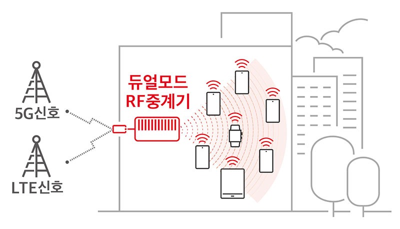 ‘스몰셀 설계 및 기술 상용화’ 부문에서 수상한 ‘5G/4G 듀얼 모드 RF 중계기’는 실외 기지국의 5G/LTE 전파를 받아 빌딩, 터널, 지하공간 등 전파가 닿기 어려운 실내로 증폭·확산시켜 통신 커버리지를 넓히는 핵심 장비다.