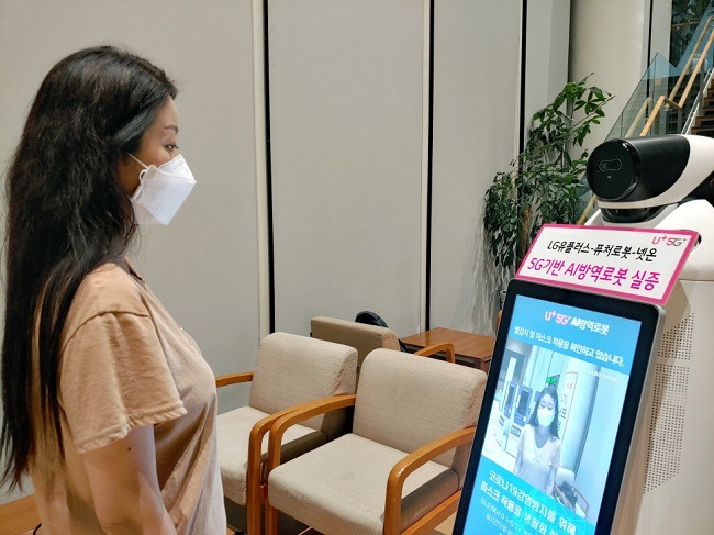 3사가 선보이는 5G 방역로봇은 자율주행으로 건물 내부를 이동하며 얼굴인식과 온도측정을 통해 마스크 착용 여부 및 체온을 확인하는 로봇이다. 예를 들어 로봇이 이동 중에 마스크를 착용하지 않은 사람을 발견하면, 마스크 착용에 대한 안내 음성과 함께 중앙 관제실로 실시간 알람을 제공한다.