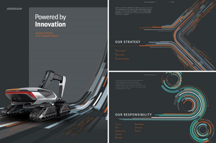 두산인프라코어 관계자는 “이번 보고서에 글로벌 메가 트렌드 관점에서 회사의 중요 이슈와 대응 방향을 정리하고, 회사의 지속가능 경영활동 성과를 이해하기 쉽게 시각화했다”며 “회사 슬로건인 ‘Powered by Innovation’에 따라 표지와 내지를 일관성 있게 디자인했다”고 밝혔다