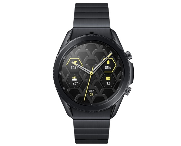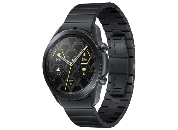 ‘갤럭시 워치3’ 티타늄 모델은 미스틱 블랙 색상의 45mm 블루투스 모델로 출시되며 가격은 77만원이다.