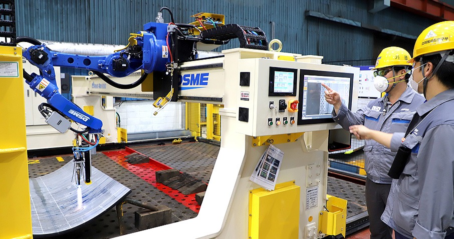 회사는 3년 전부터 이 로봇 시스템 개발에 본격적으로 착수, 지난 9월 내부 시연회를 거쳐 현재 옥포조선소 내 가공공장에 실제 적용하고 있다.