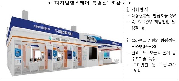 ‘디지털헬스케어 특별관’에서는 ‘닥터앤서’ 및 보건복지부와 공동으로 개발·보급하는 ‘정밀의료 병원정보시스템’의 연구개발 성과를 전시·홍보한다.